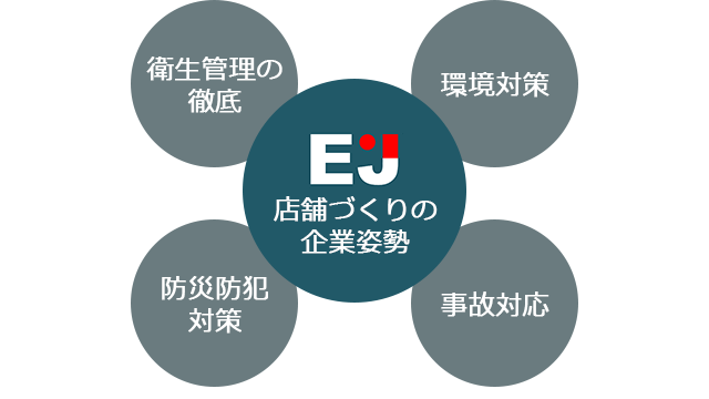建設現場での仮設店舗、現場作業員宿舎食堂での食品・雑貨等の販売事業は「現場で働く皆様に、より快適な環境を提供する」ことを目的としたものです。 弊社の運営店舗では、施工会社、現場職長会や現場作業従事者の皆様の声を反映し、防災防犯対策、衛生管理、環境対策などを徹底すると共に、迅速かつ円滑に対応することを心掛けております。